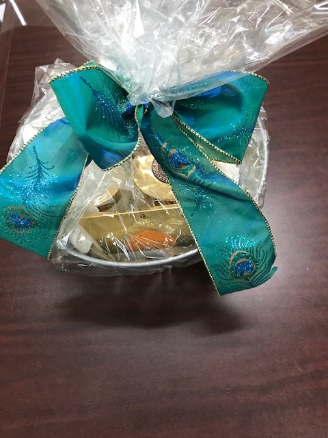 This basket of Ayurvedric body products includes a fun tea towel, body butter, sea salts, goat milk products, body oil, body wash and more.  It is a perfect basket ready as a special gift for Mother's Day.