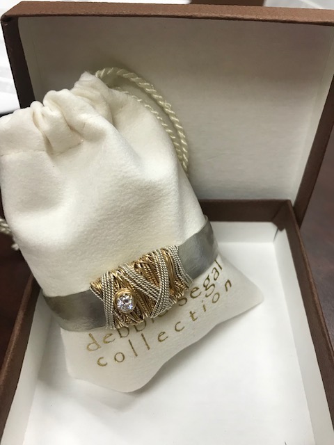 This hand hammered sterling silver bracelet embellished with 14/20 Gold leaf and sterling silver wire with accents from the Debbie Segal collection is a one of a kind that anyone would find perfect to wear.